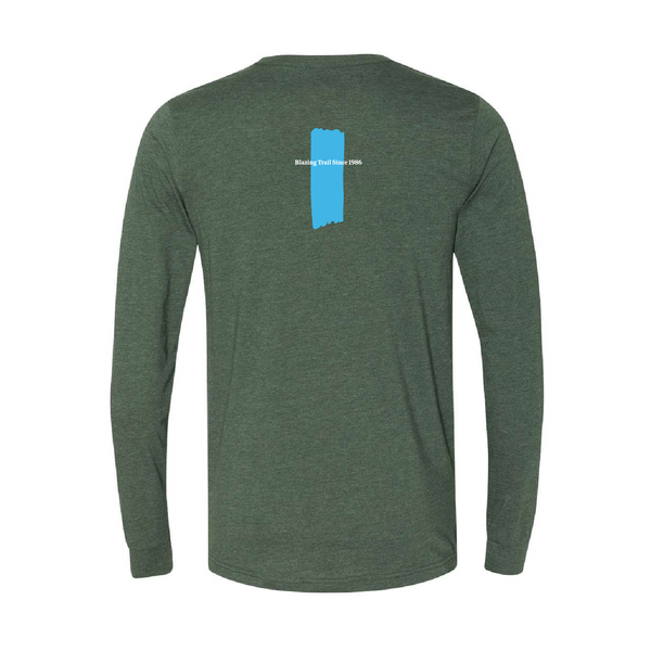 Celebrate the 40th Anniversary of the Superior Hiking Trail with this BELLA + CANVAS pre-shrunk 52/48 cotton/poly long-sleeve tee in Heather Forest. The 40th Anniversary logo is on the front and the Blue Blaze "Blazing Trail Since 1986" is on the back. Unisex sizing. *BELLA+CANVAS uses sustainable manufacturing processes with Blue Sign certified dyes, efficient dye houses that adhere to the state of California’s EPA regulations around wastewater treatment and usage and cutting facilities in Los Angeles that run on partial solar power with comprehensive recycling programs for paper waste and fabric scrap |